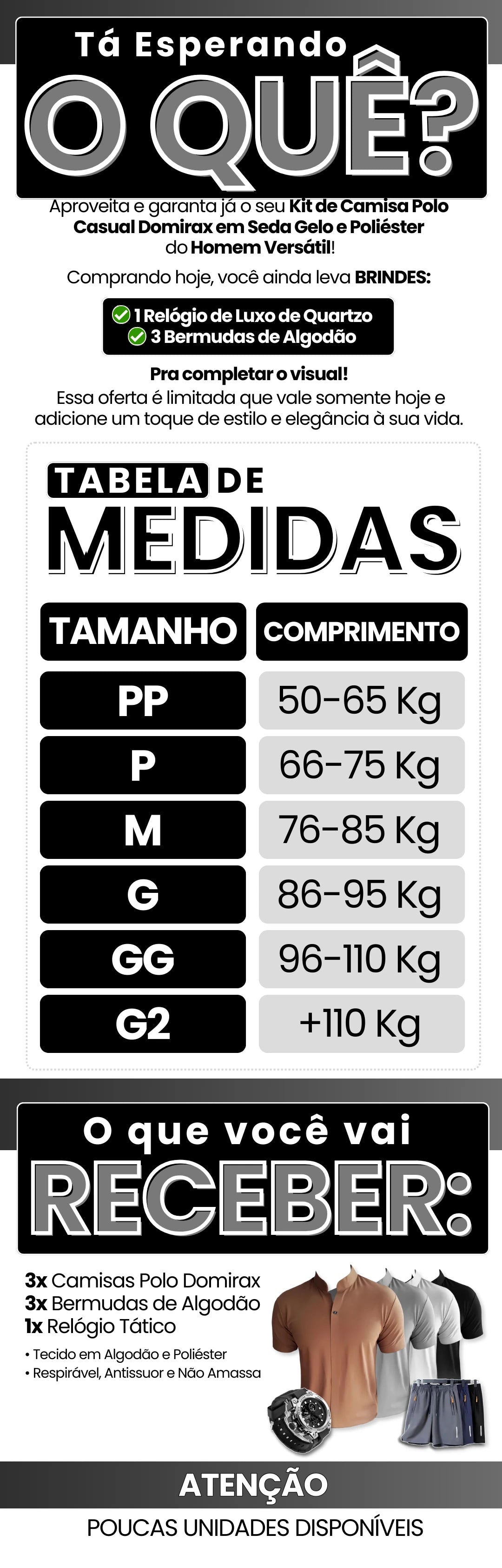 PAGUE 2 LEVE 4 – Camisa Polo Casual Domirax em Seda Gelo e Poliéster + BRINDES: 3 Bermudas e Relógio Tático